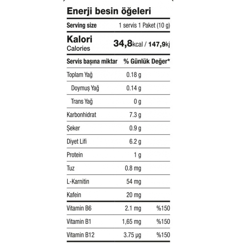 1 saşe (10 g) 150 ml sıcak su ile karıştırılıp içilmesi tavsiye edilir.