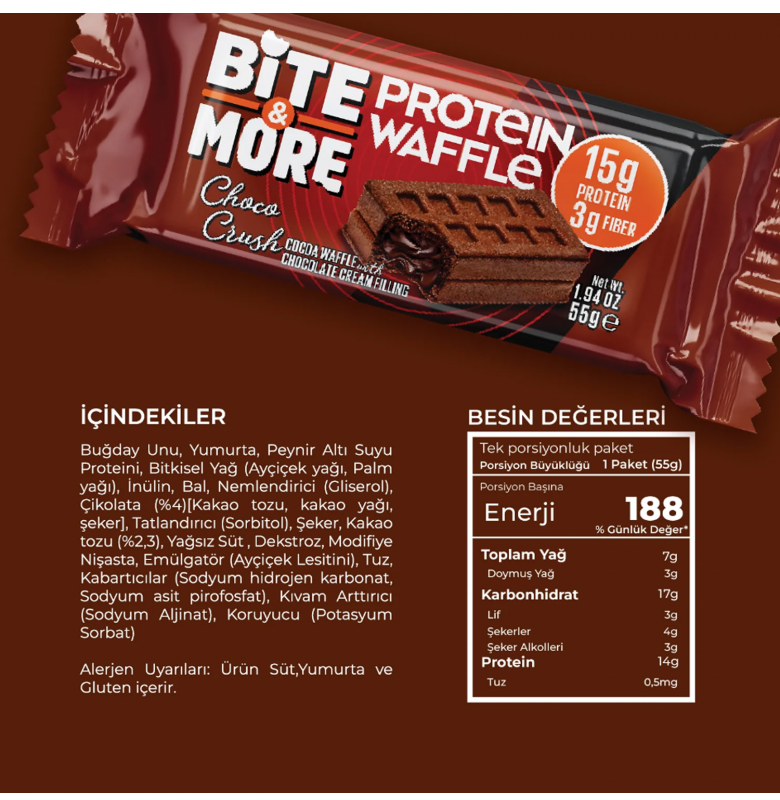 Bite & More Protein Waffle Çikolata 12 Adet x 50 gram