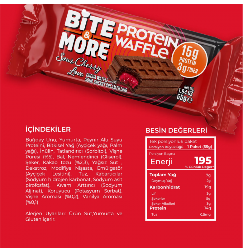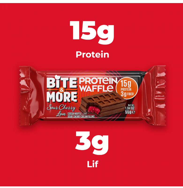 Bite & More Protein Waffle Vişne 12 Adet x 55 Gram