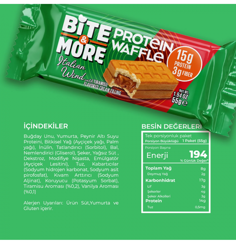 Bite & More Protein Waffle Tiramisu 12 Adet x 55 Gram